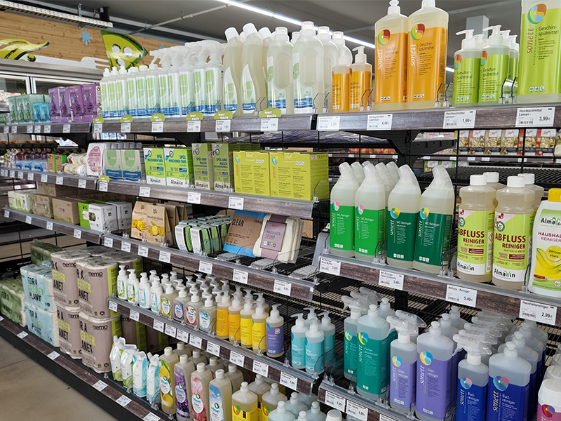 Neben Lebensmitteln gibt es im Markt auch ein Sortiment an Drogerie- und Haushaltsartikeln.