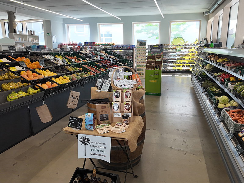 Die Auswahl an 100 % Bio-zertifiziertem Obst und Gemüse vorzugsweise der Anbauverbände Demeter, Bioland und Naturland ist reichlich. Unsere Frischetheke mit Käse und Feinkost macht das Einkaufen zu einem Erlebnis für Genießer:innen und die ganze Familie. Eine Brottheke mit Kaffeespezialitäten macht das Angebot komplett für das tägliche Rundum-Sorglos-Paket.